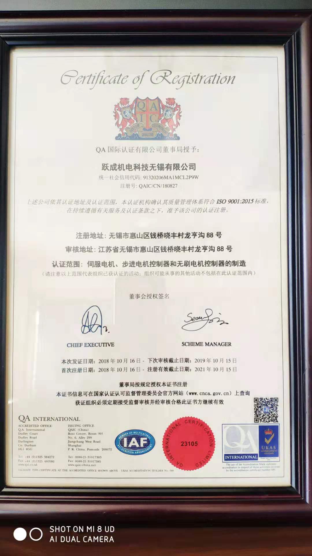 审核组通过现场询问、查看和抽样方式等形式,对质量方针、质量目标的完成情况以及全过程的控制情况进行了检查,经过严格审核,审核专家一致通过我公司的认证注册资格,并于2018年10月16日正式颁发ISO9001:2015质量管理体系证书